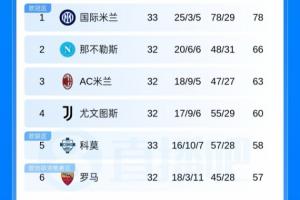 体育资讯04月18日讯 意甲第33轮,国米3-0完胜卡利亚里,先赛12分领跑;科莫客场1-2不敌萨索洛遇3轮不胜,先赛距欧冠区2分。